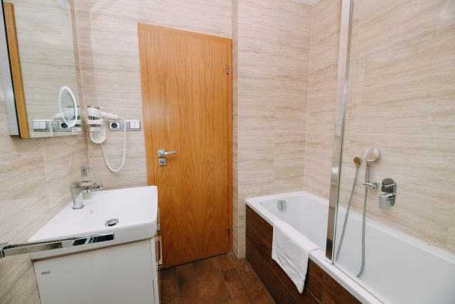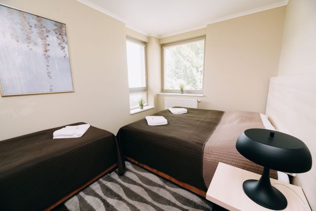 Apartmán: Nabízený apartmán 2+kk se nachází ve 2.NP ze 3. V budově je výtah. Topení plynem. Budova je zateplená, úsporná. Poplatky: SVJ-3500, topení a voda - cca 1500, elektřina cca 500, o velikosti 40 m2 má 1 ložnici, 1 koupelnu, 1 obývací pokoj. Obývací pokoj obsahuje a obývací prostor a kuchyňský kout. Obývací prostor má rozkládací pohovku a TV s plochou obrazovkou. Kuchyňský kout je vybaven lednicí, malým sporákem, mikrovlnou troubou. V jídelní části je stůl a židle. Koupelna je vybavená vanou se sprchou, WC, umyvadlem. V apartmá je pokrytí Wi-Fi a internetová TV. Z oken je výhled do zahrady. K apartmánu náleží vlastní uzamykatelná sklepní kóje, kde je možnost uskladnit kola, lyže. Kóje je dostatečně velká-2,5 m². Ubytování je naprosto klidné, s výhledem do krásného okolí. Budovy jsou umístěny v udržovaném parku. Je zde také dětské hřiště. Rezort se uzavírá závorou na kód. Parkovací místo K apartmánu náleží vlastní parkovací místo přímo pod okny, 14 m².